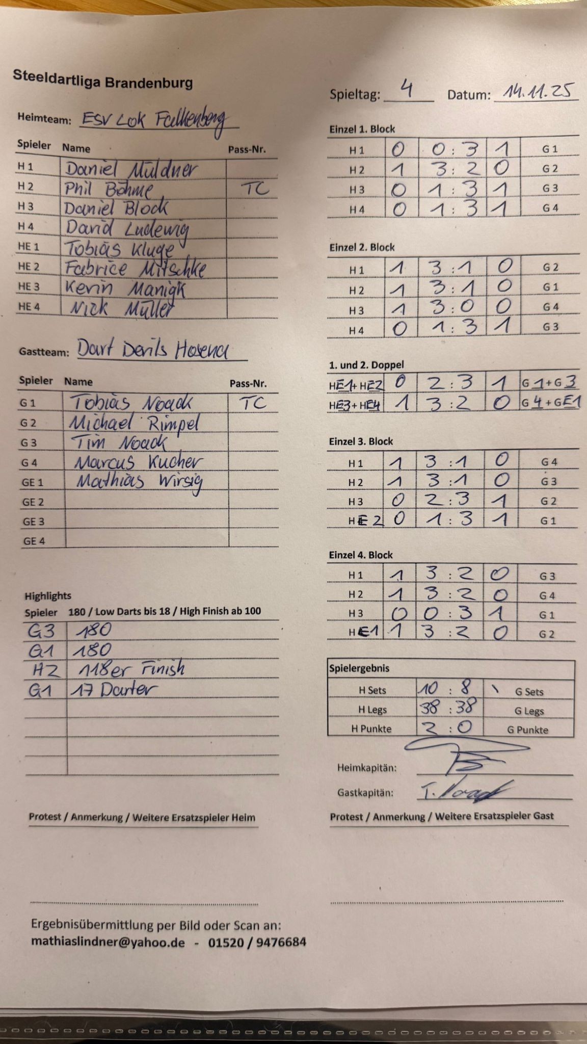 Beim Ligaspiel zwischen dem ESV Lok Falkenberg und den starken Dart Devils Hosena entwickelte sich von Beginn an ein hochspannendes und sportlich intensives Match, bei dem beide Mannschaften ihr ganzes Können zeigten.